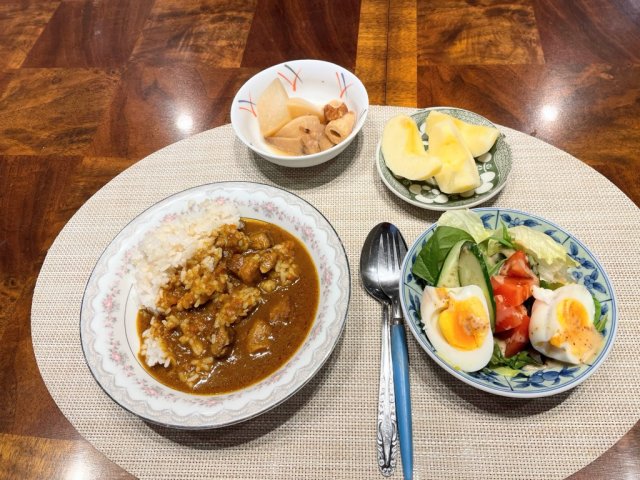 今日の朝ごはん。夫のリクエストで朝カレーでした。