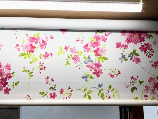 お隣の建売住宅の工事は、足場が取れました。養生シートが無くなって、少しは明るく感じられますが、やっぱりギリギリに建物が迫っている感があります。住宅が密集しているのですから仕方ないのですね。パントリーの私の机前の窓は開けられなくなりました。おとなりの建物も同じ場所に窓があるのです。今迄あんまり使わなかったけれど、ロールスクリーンを利用してみましょう。・・・可愛らしいガラで、明るくなりそうです。前向きに考えましょう。