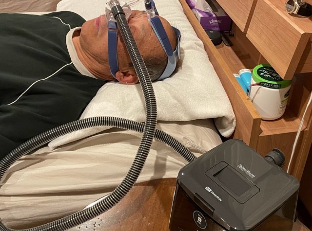 夫は、以前からいびきをかくので、睡眠時無呼吸症の検査を受けてみました。そうしたら、けっこう重症の睡眠時無呼吸症でした。就寝時に装着するマスクのメーカーの方が説明に来て下さって、昨晩から早速装着して寝るようになりました。