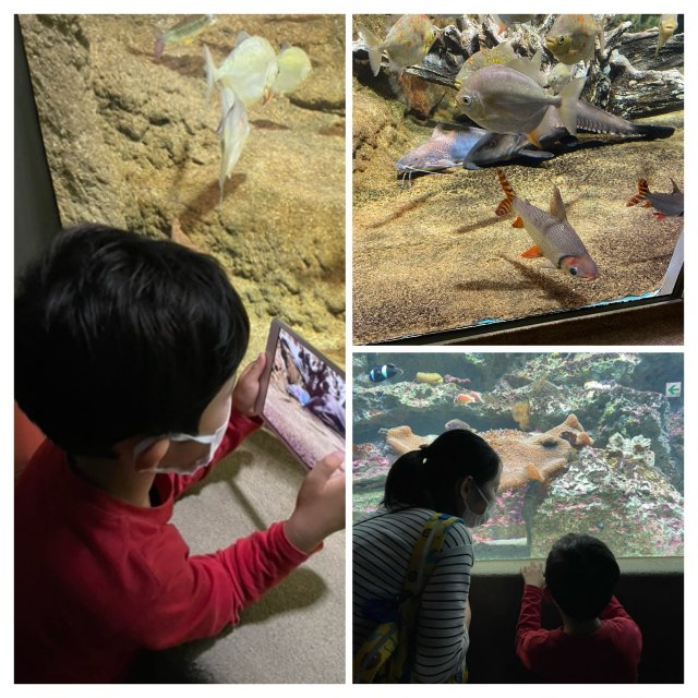 屋内の展示スペースも孫はじっくりと見ていました。お魚好きですから、知っている魚や見たかった魚に出会えると大喜びしていました。久しぶりの水族館でしたが見ていて飽きませんでした。屋外展示では、ペンギンやペリカンが頭上の水路を行き交うところが見れました。アシカのミニショーも見れて、とてもラッキーでした。