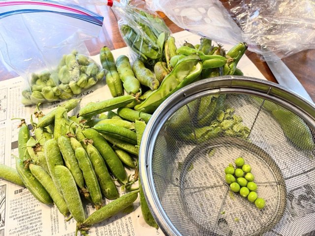 そして今夜の下ごしらえ。グリンピースご飯にします。