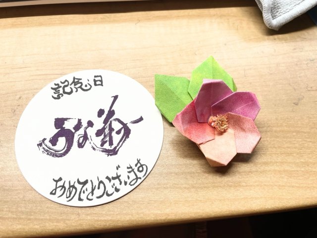 昨日のテーブルに置かれていたコースターと折り紙です。