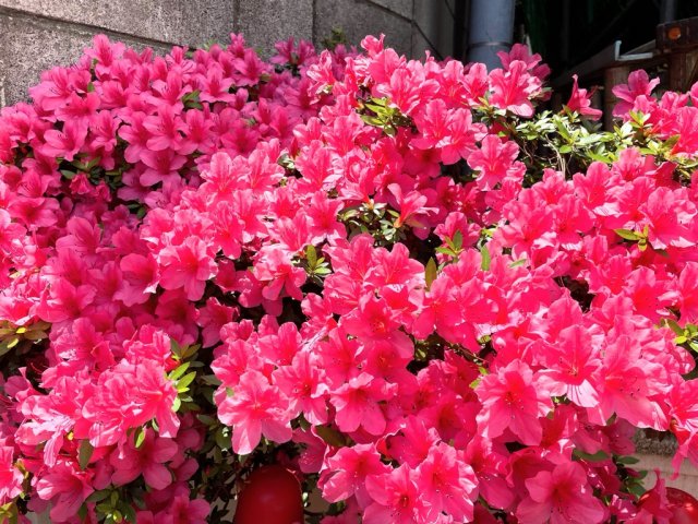 我が家の駐車場のツツジ。大してお世話していないのにこんなに綺麗に咲いてくれました。