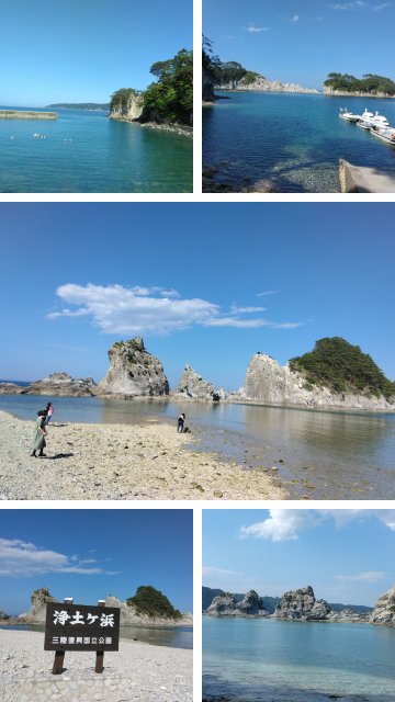 2日目、ホテルから30分位にある小本駅の無料駐車場に車を停め、下りの鉄道に乗りました。南三陸の海岸沿いを走るので、、ビュースポットがたくさんあるのですが、宮古駅からはトンネルが続くので、小本駅まで行って乗った方が良いと、ホテルのスタッフが教えてくれました。平日で乗客も少なかったのですが、旅行客と分かると海の見える側の席をそっと譲ってくれたり、ビュースポットでは数分停車し観光案内をして、観光客を楽しませてくれました。