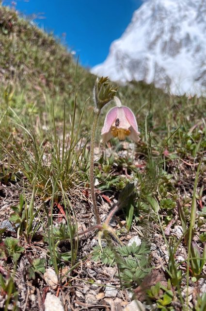 テントサイトで見つけた花だそうです。過酷な環境でも花は咲く。