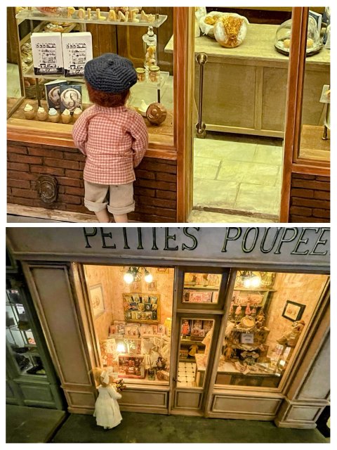 まだまだありました。写真ではうまく伝わらないと思いますが、香水の瓶が並んだ化粧品店の店先や、仕立て屋さん、重厚なダイニングセットにシャンデリアが煌めくお部屋の一こまなど、見事!!としか言いようがありませんでした。