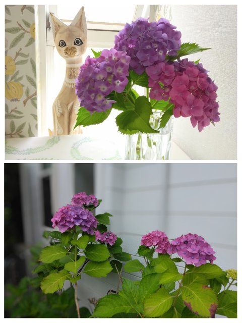 今年のアジサイは赤みがかって、例年のブルー色とは違うのです。