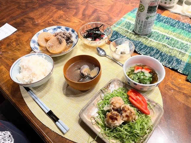 丁寧に出汁を取り、それで里芋など根菜の煮物をつくり、大根葉と出汁を取った後の昆布、鰹節にゴマを入れてふりかけを作りました。
