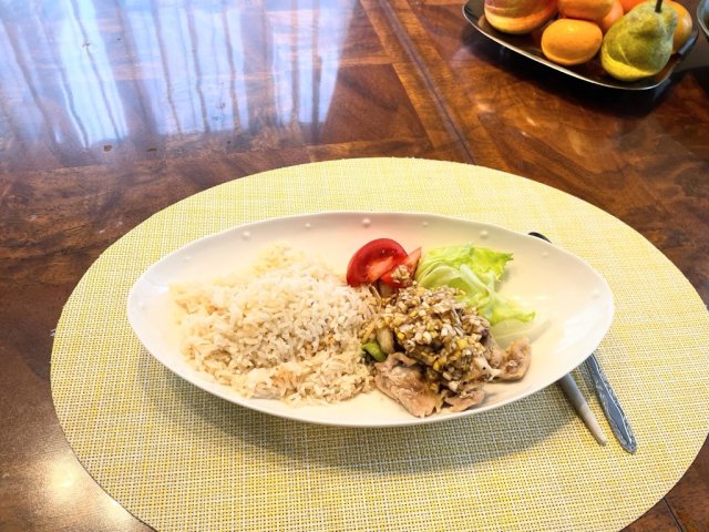 お昼ご飯に作ったカオマンガイです。ナンプラーの救済メニューですが、美味しい、と好評でした。