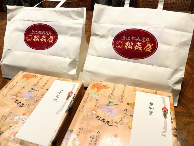 終わってみれば、夫は肉の日の29位。千恵子さんはハンディの関係で4位でした。私は参加賞。参加賞も美味しそうなお肉でした。