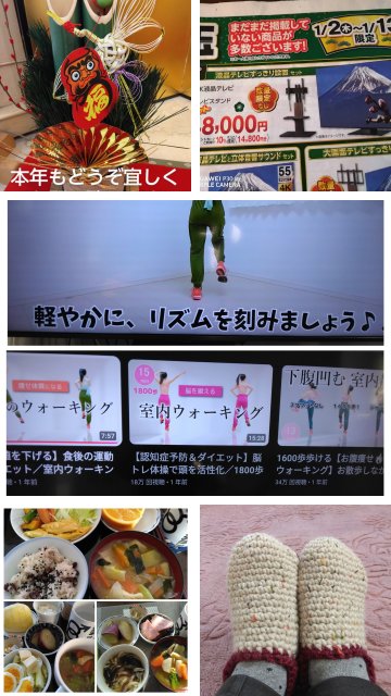 初売りでテレビとパソコン、スマートウォッチを買い替えました。前から目星を付けていた50型のregza(東芝)は完売、55型regzaテレビ台付きセットでお買い得だったので、それにしました。有酸素運動のYouTubeを見ながら、家でも身体を動かすのが目的で、新しいテレビが欲しかったのです。YouTubeを見て、ルームシューズを編んでみました。フローリングが冷たいので、スリッパの代わりです。