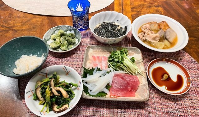 夕食です。帰宅して大急ぎで用意したのですが、なんと準備は夫が手伝ってくれて、今は後片付けもしてくれています。なんで? とあれこれ理由を考えてしまいそうですが、ここは素直に感謝して甘えていようと思います。有難う!!