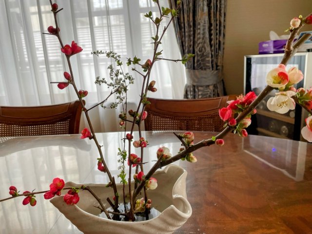木瓜が綺麗です。我が家のお花。留守中お世話を宜しくね。