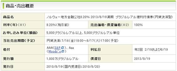 参照:ブラジル・レアル建利付債券(2010年8月17日までの売出予定)